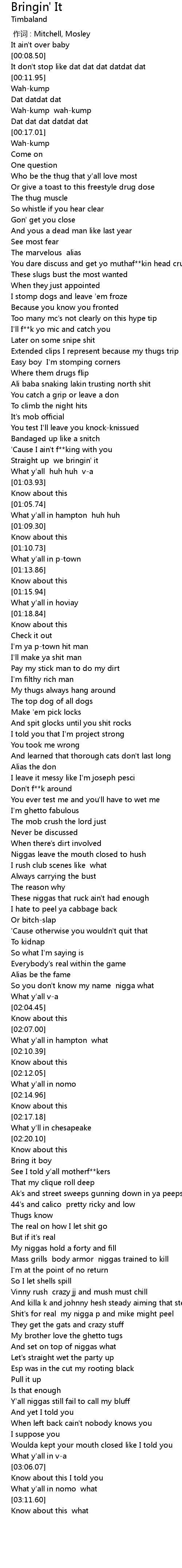 | [01:45.58] | Niggas leave the mouth closed to hush |