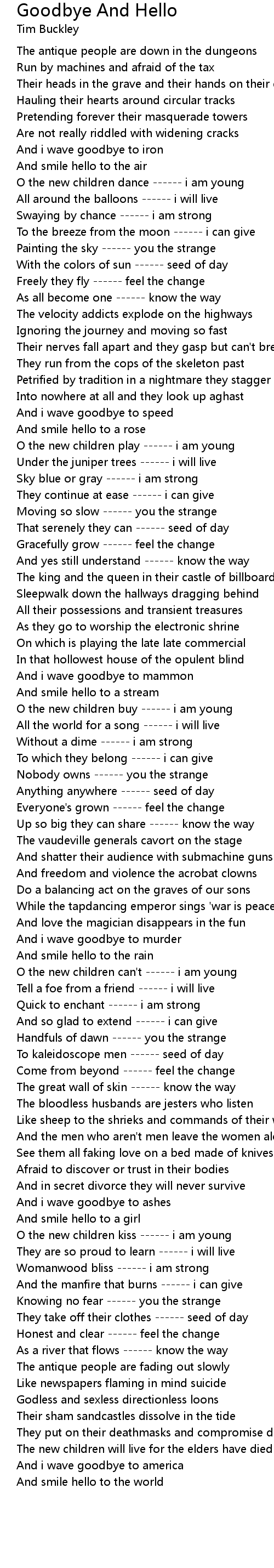 O the new children can't ------ i am young |