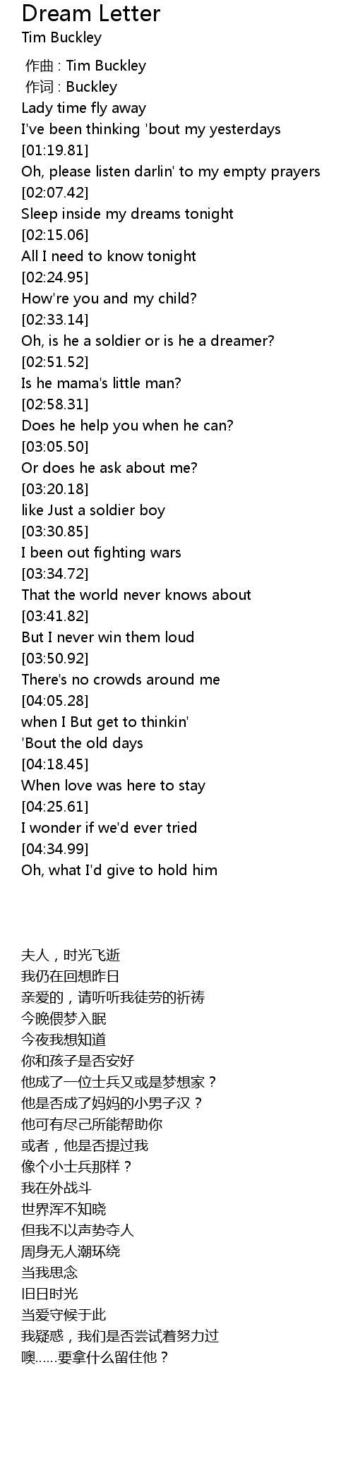 | [00:00.00] | 作曲 : Tim Buckley |