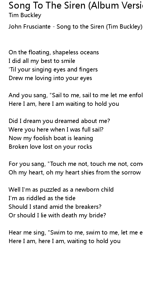 Hear me sing, "Swim to me, swim to me, let me enfold you" |