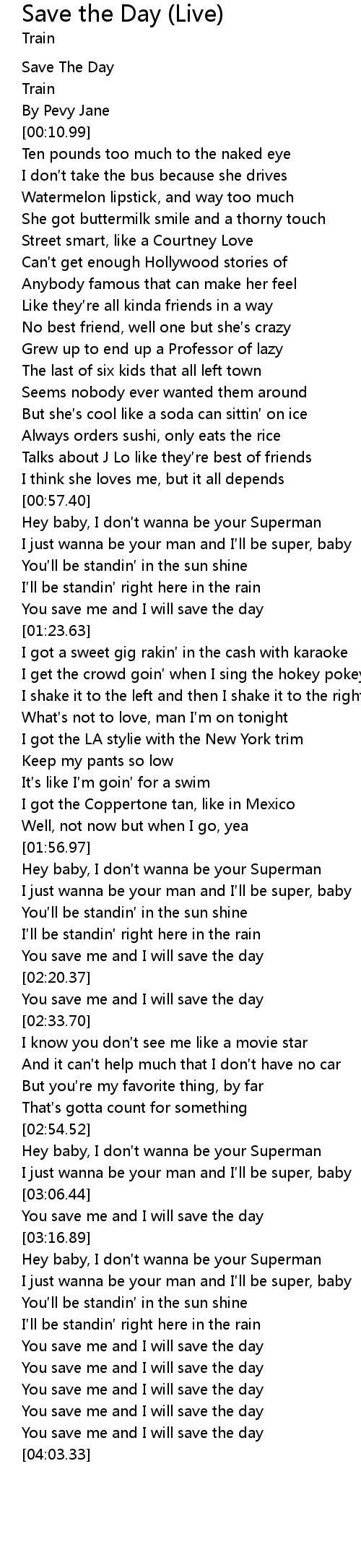 | [01:58.00] | Hey baby, I don t wanna be your Superman |