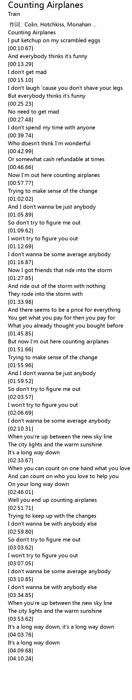 | [00:00.74] | Counting Airplanes |