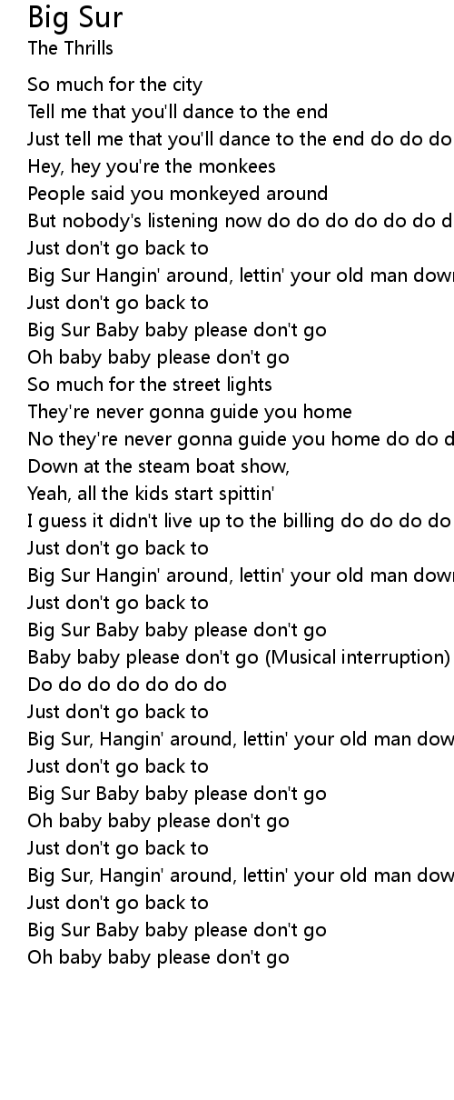 Big Sur Baby baby please don't go |