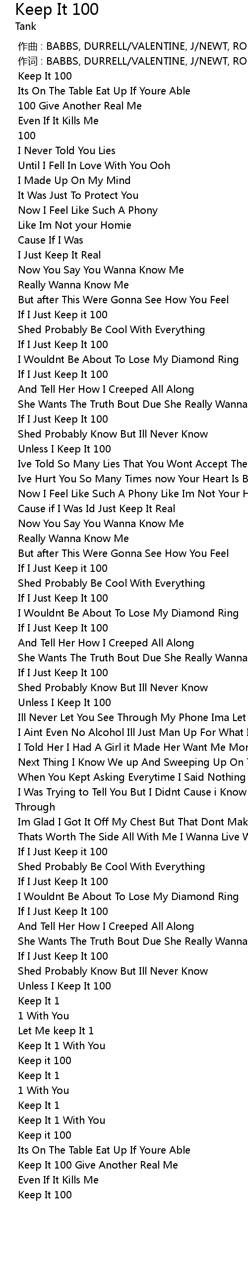 | [03:51.98] | Keep It 100 Give Another Real Me |