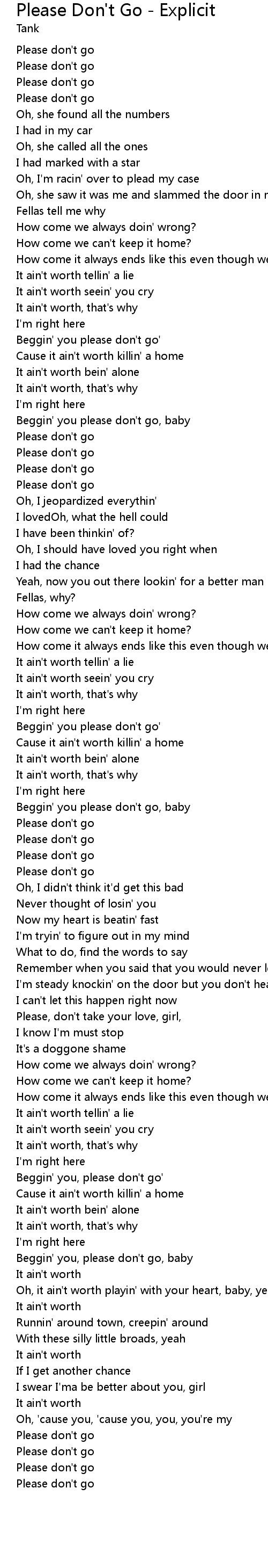 Beggin' you please don't go' |