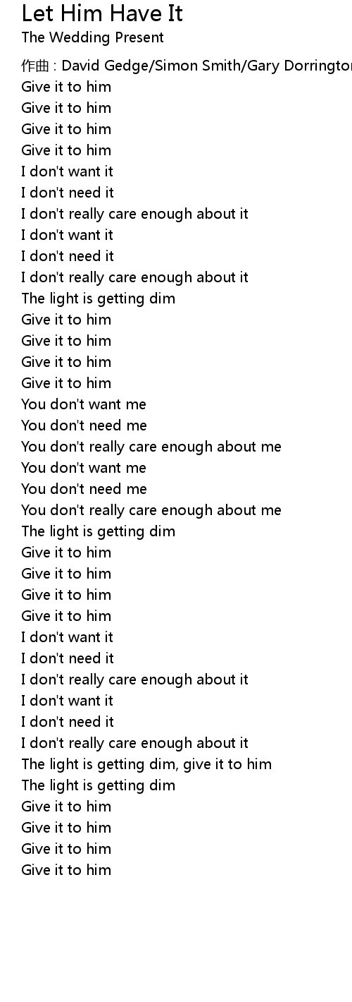 | 作曲 : David Gedge/Simon Smith/Gary Dorrington/Darren Belk | |