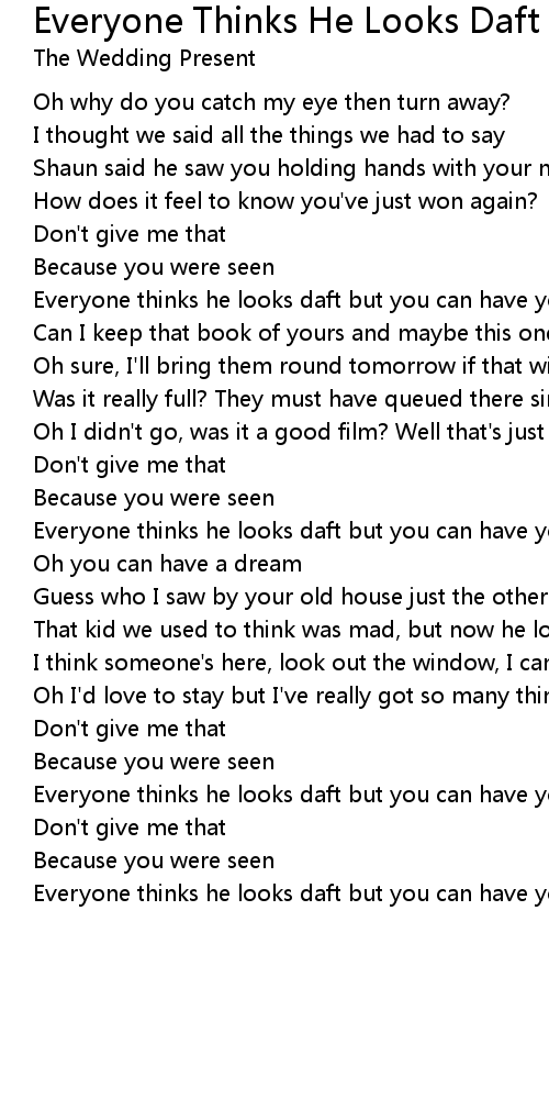 Everyone thinks he looks daft but you can have your dream (ohh) |