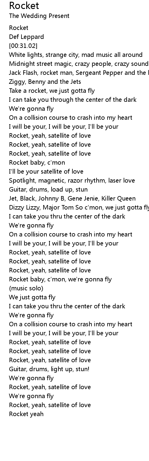 Rocket, yeah, satellite of love |