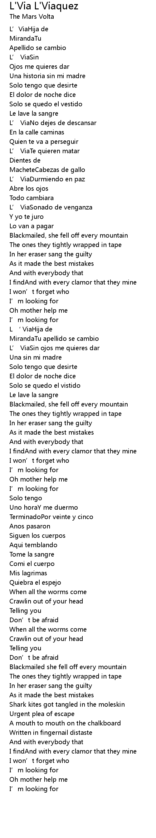| L’ ViaSin ojos me quieres dar | |