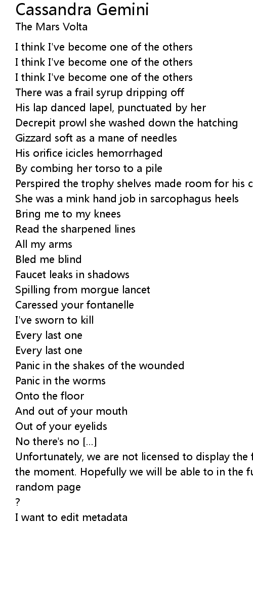 Unfortunately, we are not licensed to display the full lyrics for this song at the moment. Hopefully we will be able to in the future. Until then, how about a |