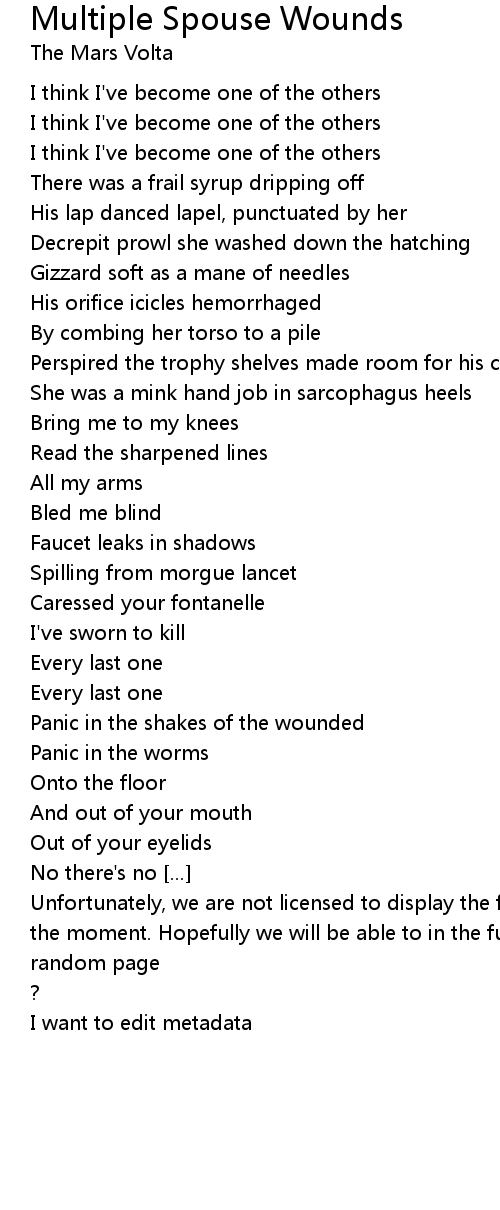 Unfortunately, we are not licensed to display the full lyrics for this song at the moment. Hopefully we will be able to in the future. Until then, how about a |
