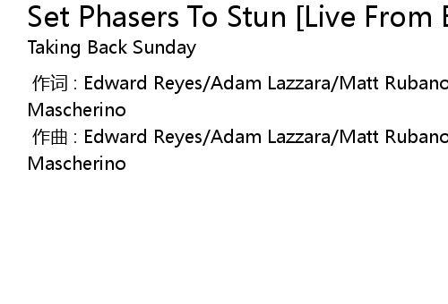 | Song | Set Phasers To Stun [Live From Bamboozle] |