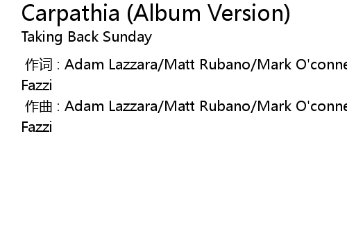 | [00:00.000] | zuò qǔ : Adam Lazzara Matt Rubano Mark O' connell Eddie Reyes Matthew Fazzi |