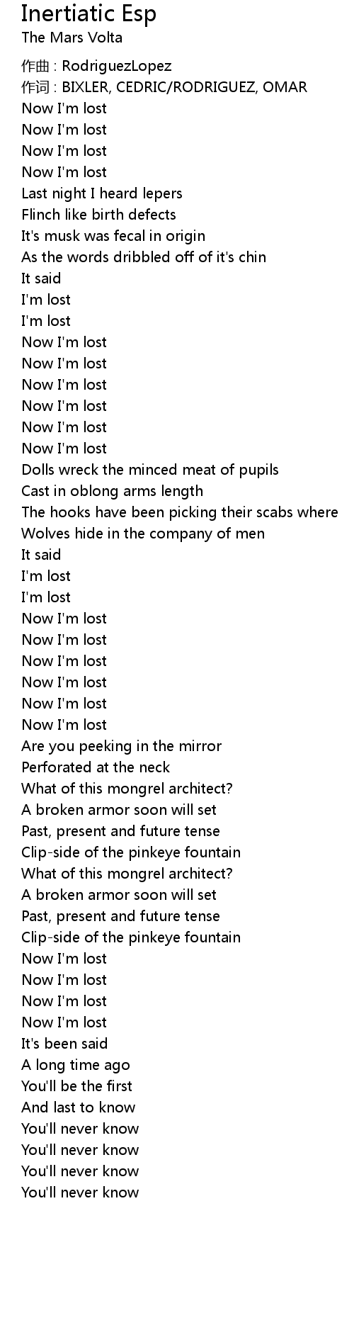 | 作词 : BIXLER, CEDRIC/RODRIGUEZ, OMAR | |