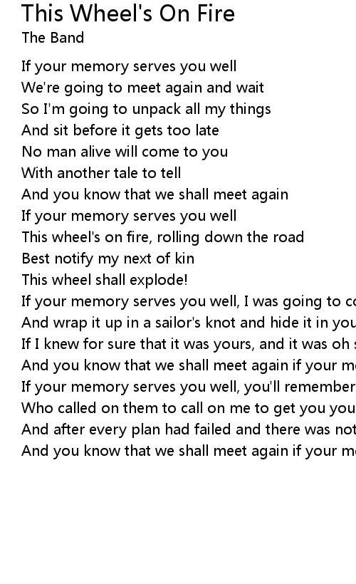 This wheel's on fire, rolling down the road |