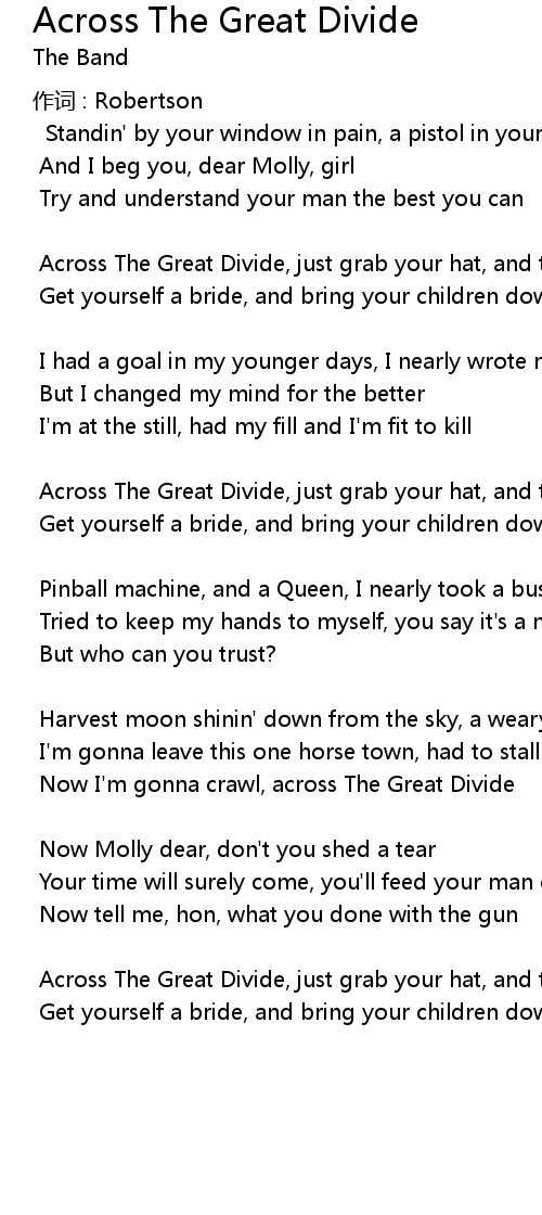 | Across The Great Divide, just grab your hat, and take that ride | |