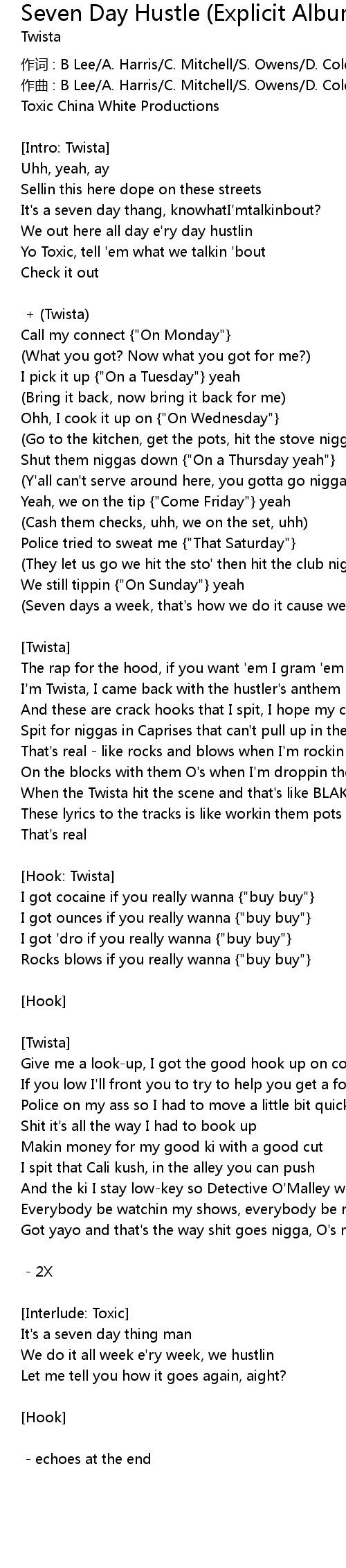 | Song | Seven Day Hustle (Explicit Album Version) |