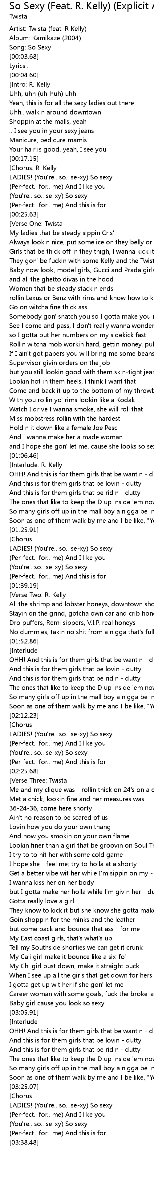 | [00:31.54] | They gon' be fuckin with some Kelly and the Twist' |