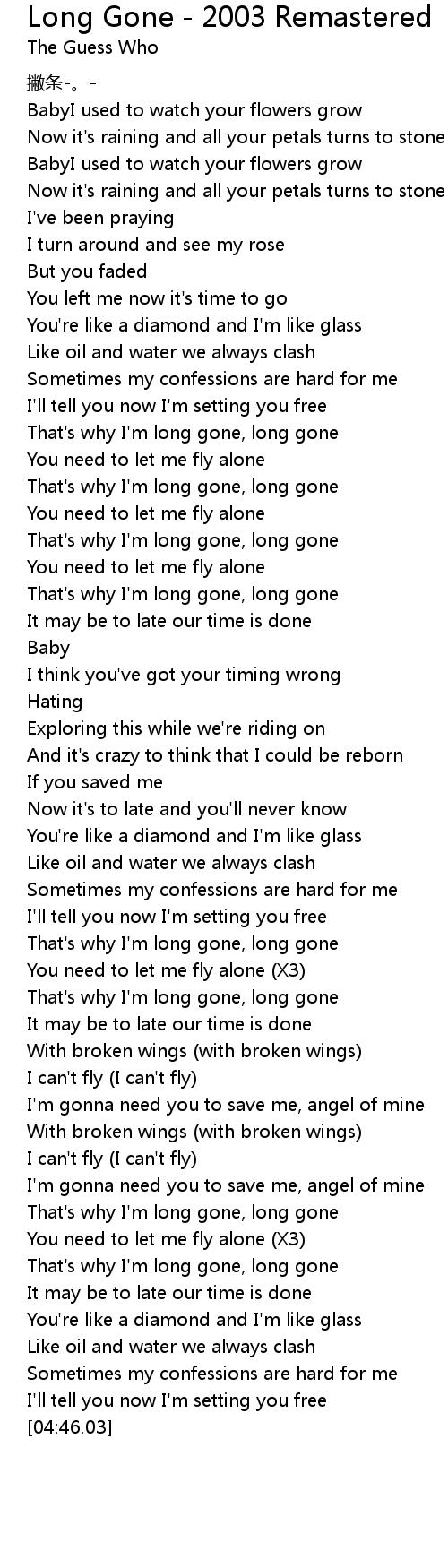 | [02:45.00] | That' s why I' m long gone, long gone |