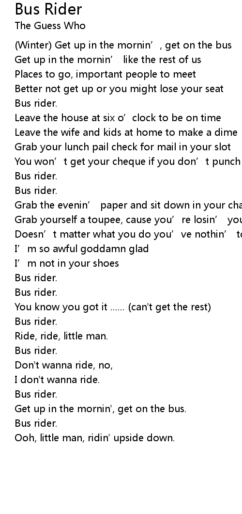 | Get up in the mornin', get on the bus. | |