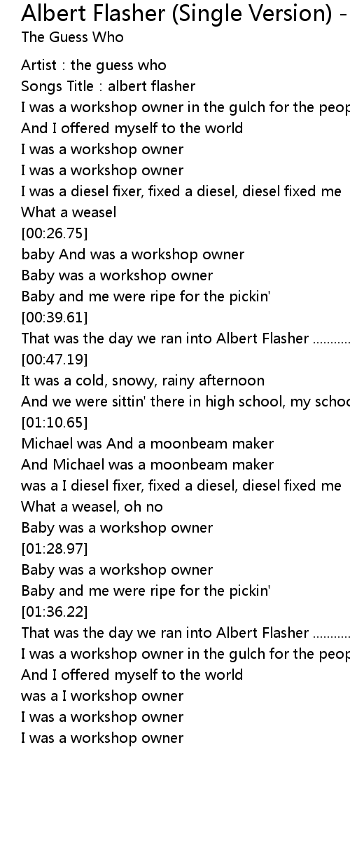 | [00:41.61] | That was the day we ran into Albert Flasher ............. |