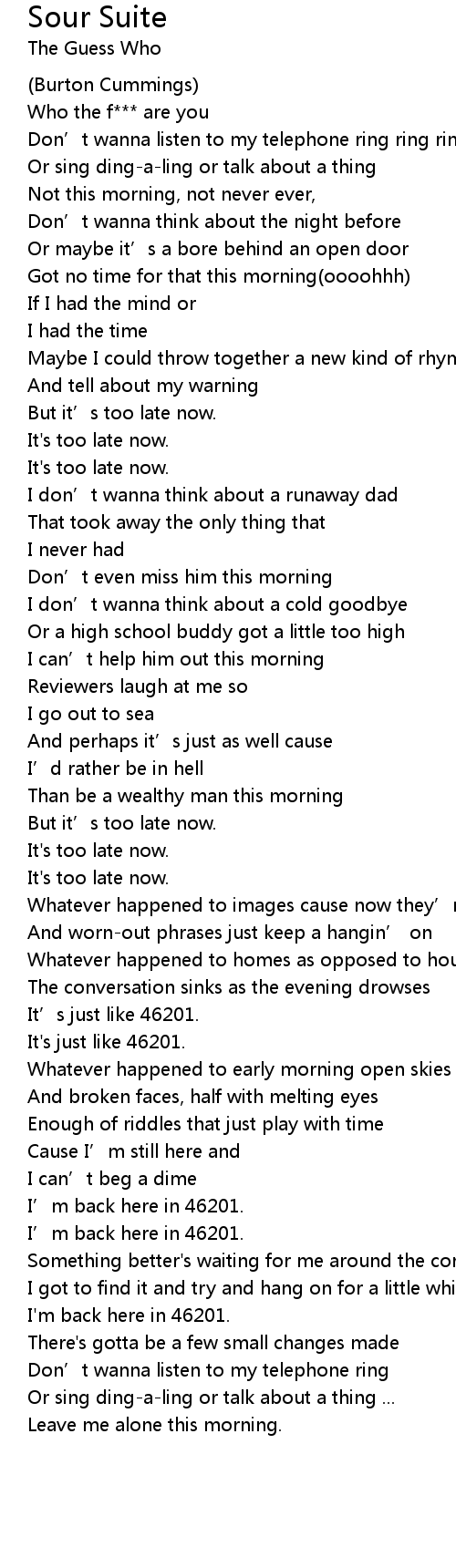 | Don’t wanna listen to my telephone ring ring ring | |