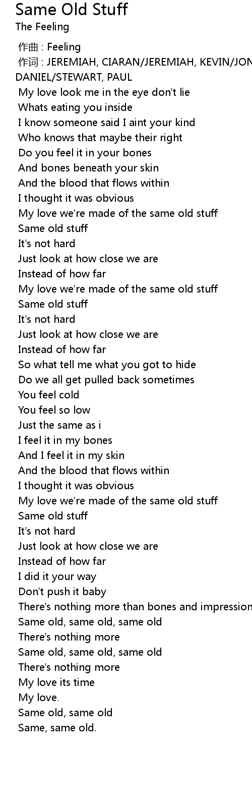 | [00:49.40] | My love we're made of the same old stuff |