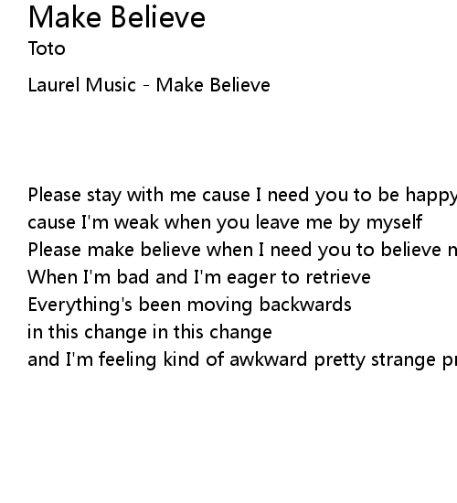 | Please make believe when I need you to believe me | |