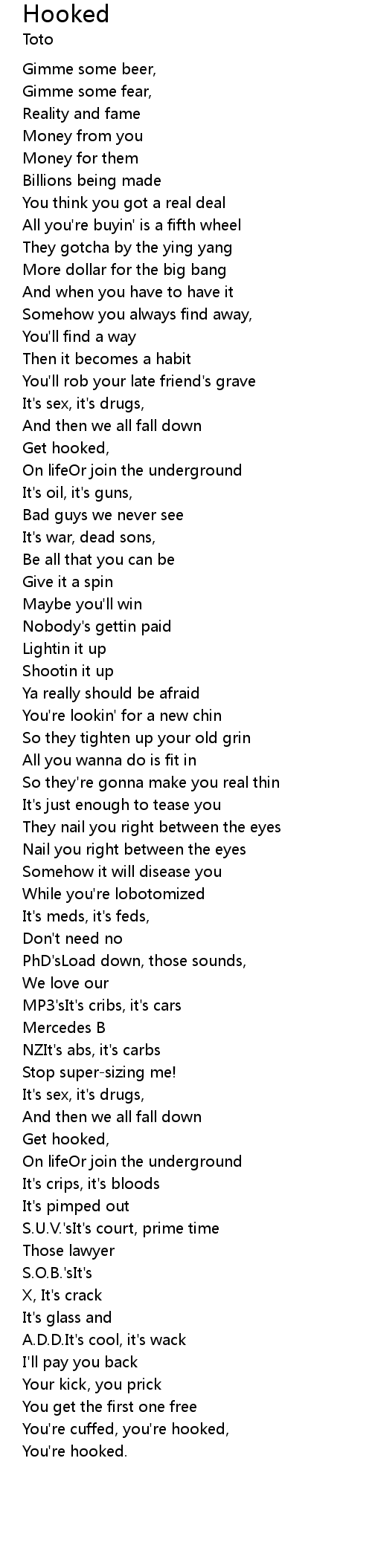 You're cuffed, you're hooked, |