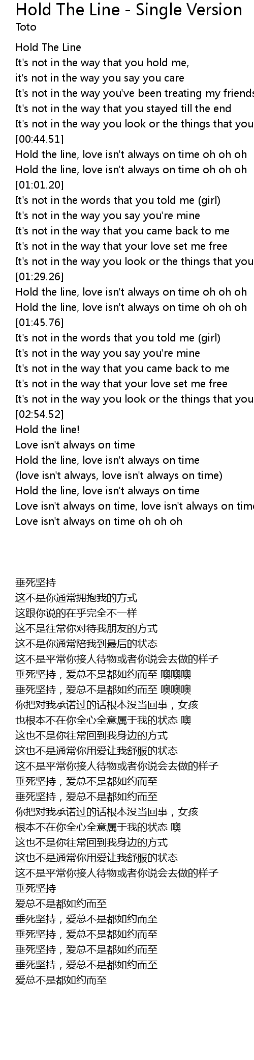 [00:45.00] Hold the line, love isn't always on time oh oh oh