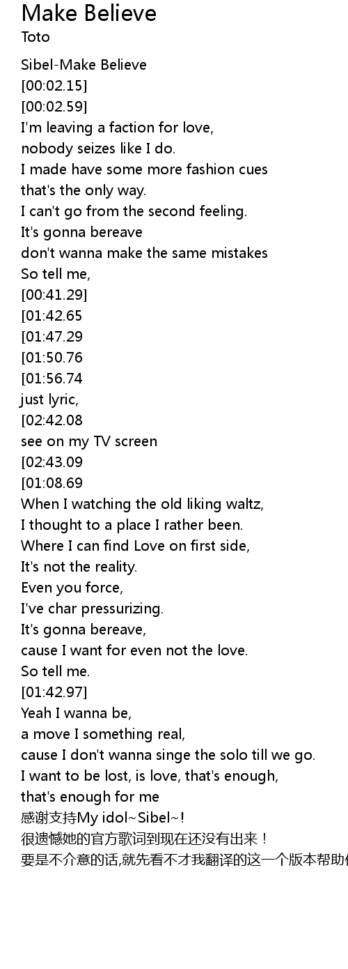 | [03:12.41][02:43.09][02:04.09][00:59.03] | is make believe. |