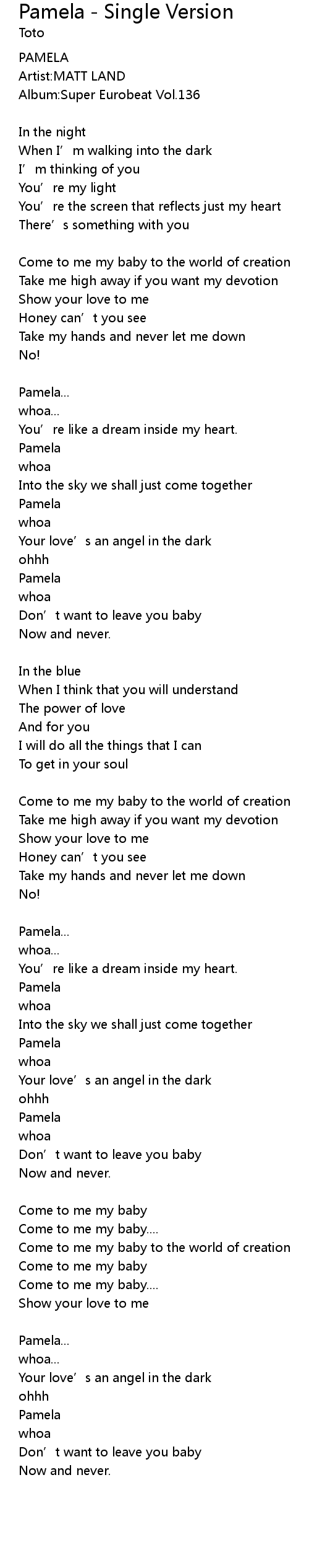 | Song | Pamela - Single Version |