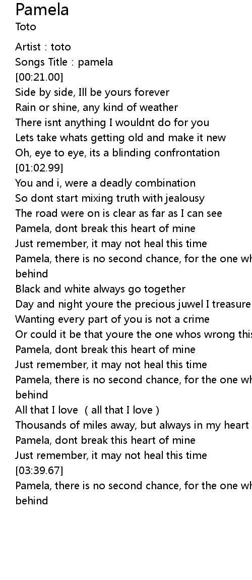 | [01:29.74] | Pamela, dont break this heart of mine |