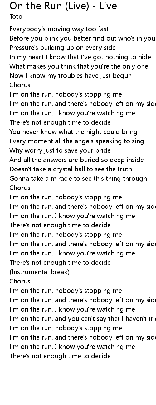 I'm on the run, and you can't say that I haven't tried |