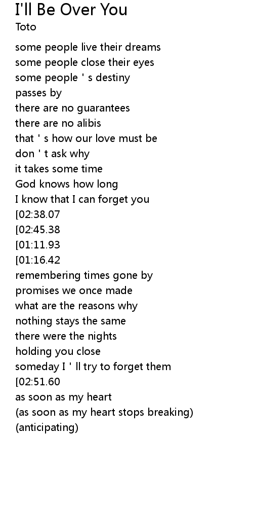 | [02:14.96][01:16.42] | I ll be over you |