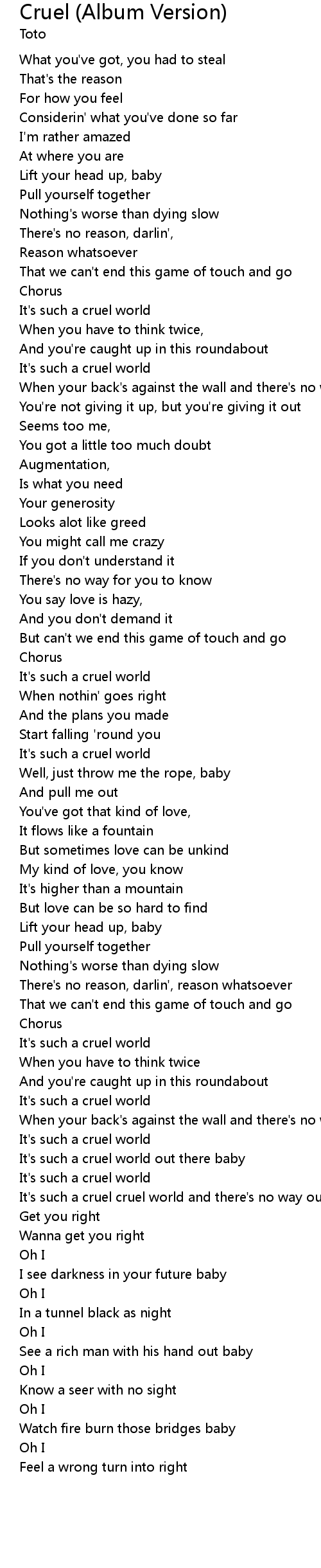 It's such a cruel world |
