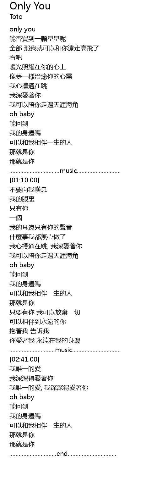 | [02:47.49] | 我唯一的愛, 我深深得愛著你 |