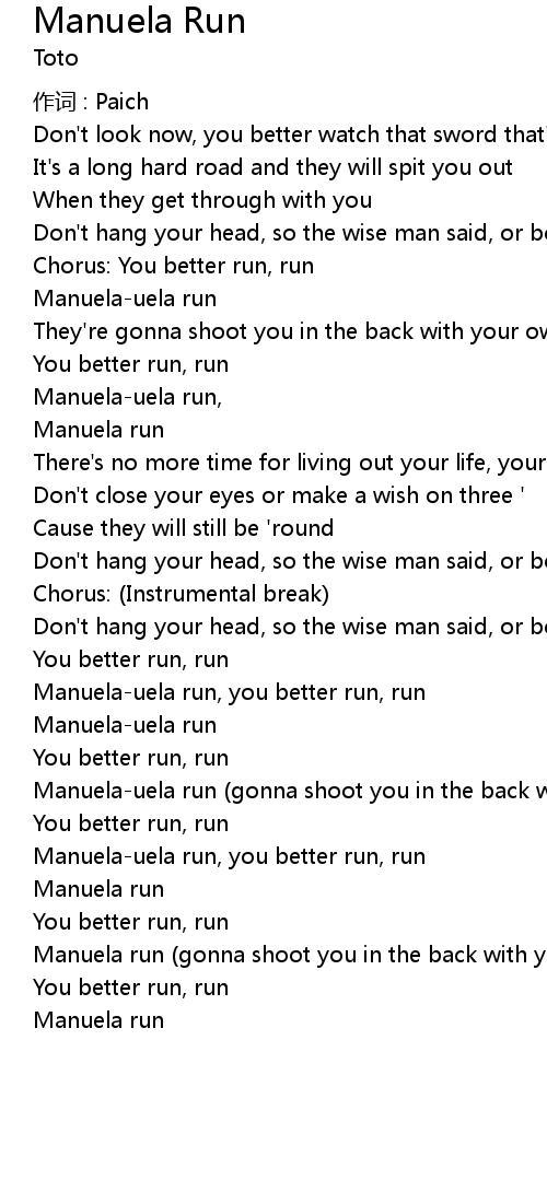 | Manuela-uela run, you better run, run | |