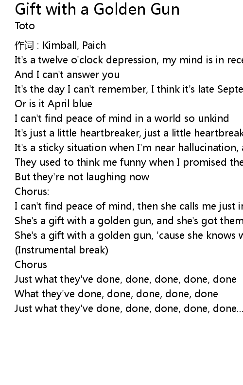 | She' s a gift with a golden gun, ' cause she knows what they' ve done | |