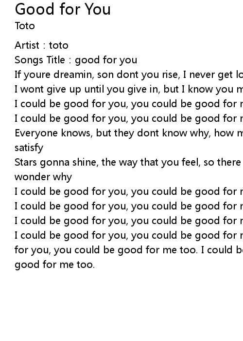 | [02:18.77] | I could be good for you, you could be good for me too. I could be good for you, you could be good for me too. I could be good for you, you could be good for me too. |