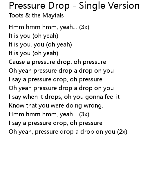 | I say a pressure drop, oh pressure | |