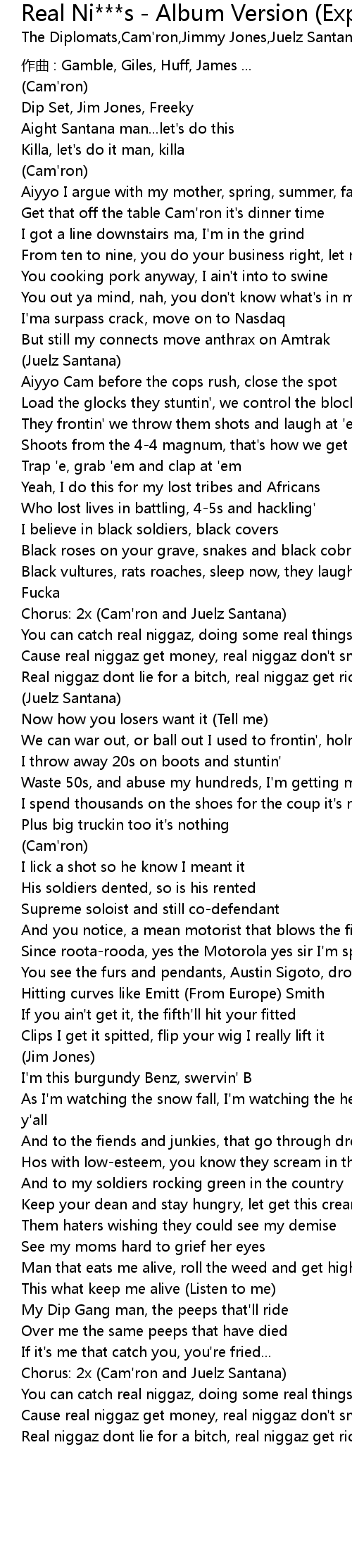 | Real niggaz dont lie for a bitch, real niggaz get rich | |
