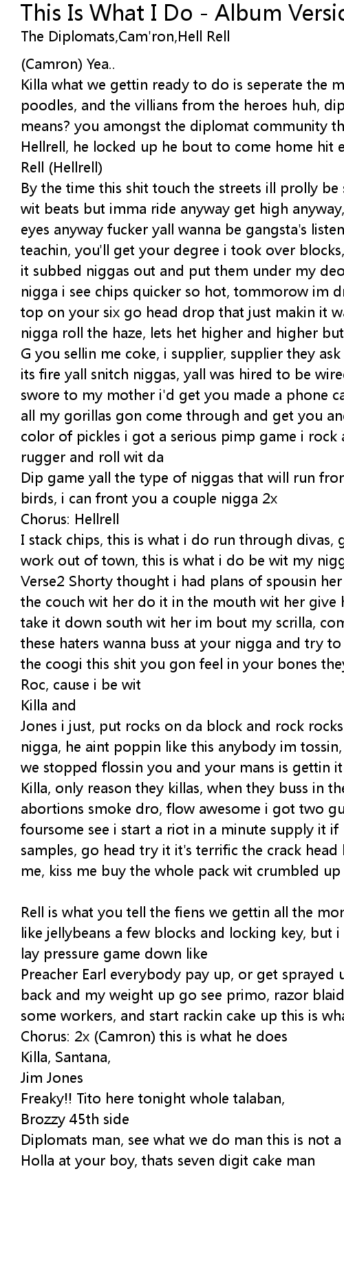 Killa what we gettin ready to do is seperate the men from the mice,pit from the poodles, and the villians from the heroes huh, dipset bitch you kno what that means? you amongst the diplomat community this my man |