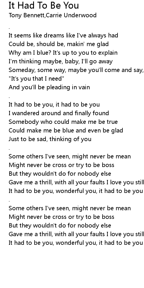 It had to be you, wonderful you, it had to be you |