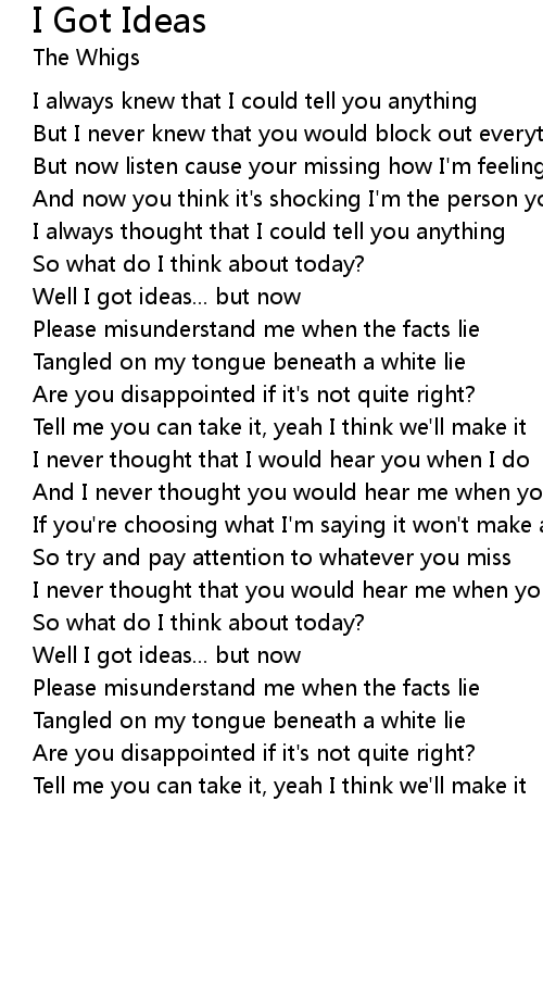 Well I got ideas... but now |