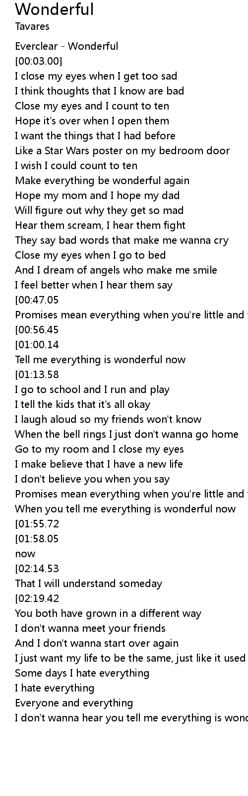| [03:00.56] | I don't wanna hear you tell me everything is wonderful now |