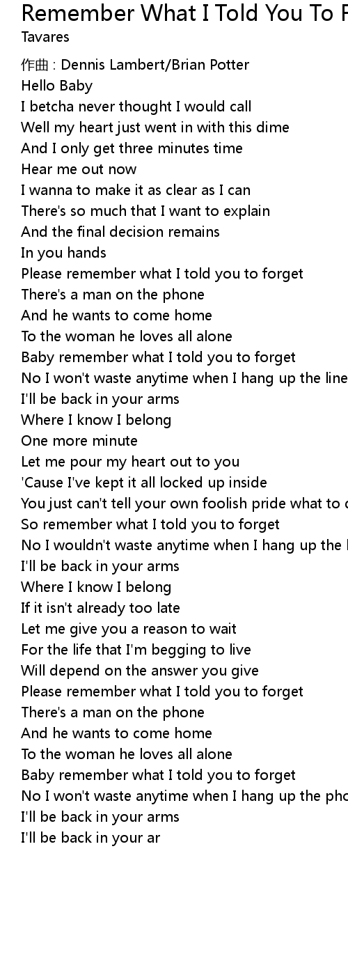 | Please remember what I told you to forget | |