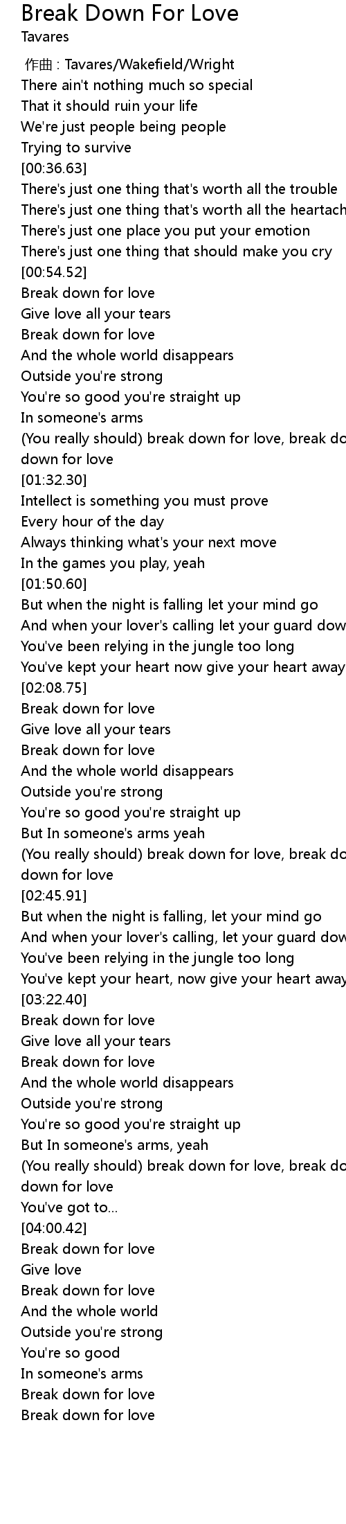 | [03:55.54] | (You really should) break down for love, break down for love, break down for love |