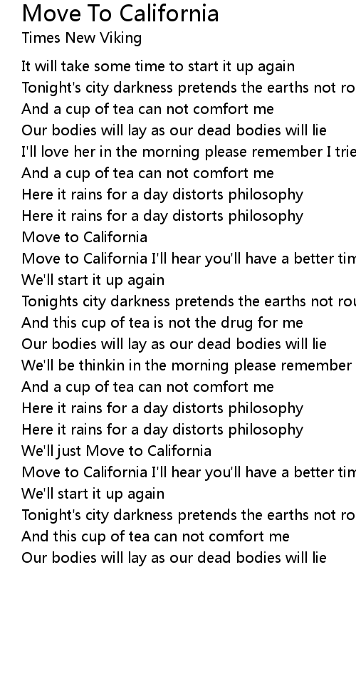 Move to California I'll hear you'll have a better time |