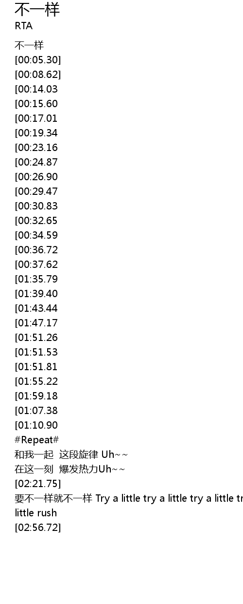 | [02:02.95][01:07.38] | 要不一样就不一样 Try a little rush |